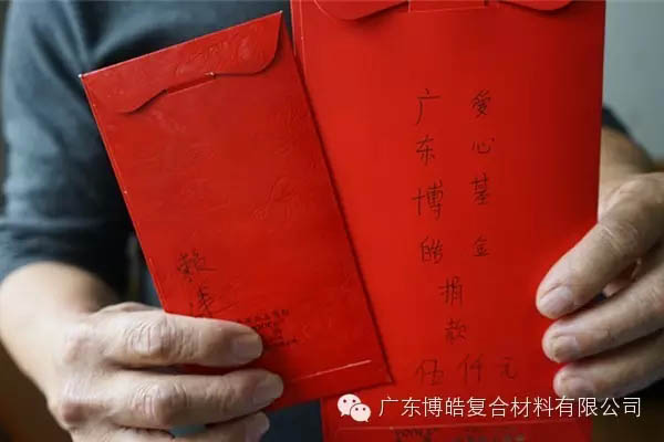 廣東博皓復合材料有限公司董事長經熟人轉述得知此事,不僅積極號召身邊人,發動小型的微信捐資活動,還從博皓愛心基金支出5000元人民幣,為這位生病的母親加油。當公司代表賴建明將5000元現金交到賴蘇蘭丈夫手中的時候,他稍稍有點哽咽。從當時這位憨厚的丈夫百味交集的表情中可以看出,作為家里的頂梁柱,不管平日多么堅強,當面對自己的親人被病魔纏身之時,又是多么的無助。看著這位被病痛折磨之下的45歲的媽媽,你很難相信她就是那個沒日沒夜加班只為讓家人可以稍微寬裕的母親,此刻,她無力的蜷縮在被窩里,嘴唇蒼白,臉色鐵青,雙眼無力的看著一滴滴藥水順著被針扎的凸起的血管流入身體,那就是她的希望,或許她和其他母親一樣,正在思考,大女兒是否穿暖,小女兒有無吃飽……..